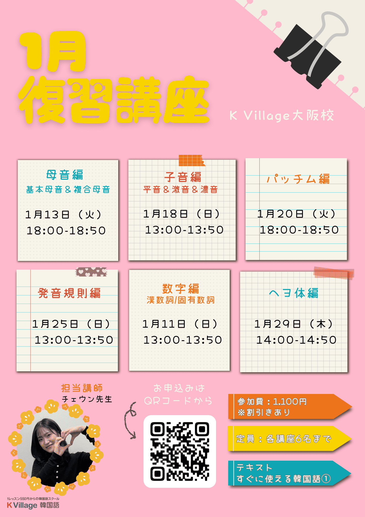 【いまなら入学金は0円】 毎月のレッスン料金は格安価格。大阪で韓国語を学びたいという多くの声に応える形でK Villageの中でもまだ新しい韓国語教室。