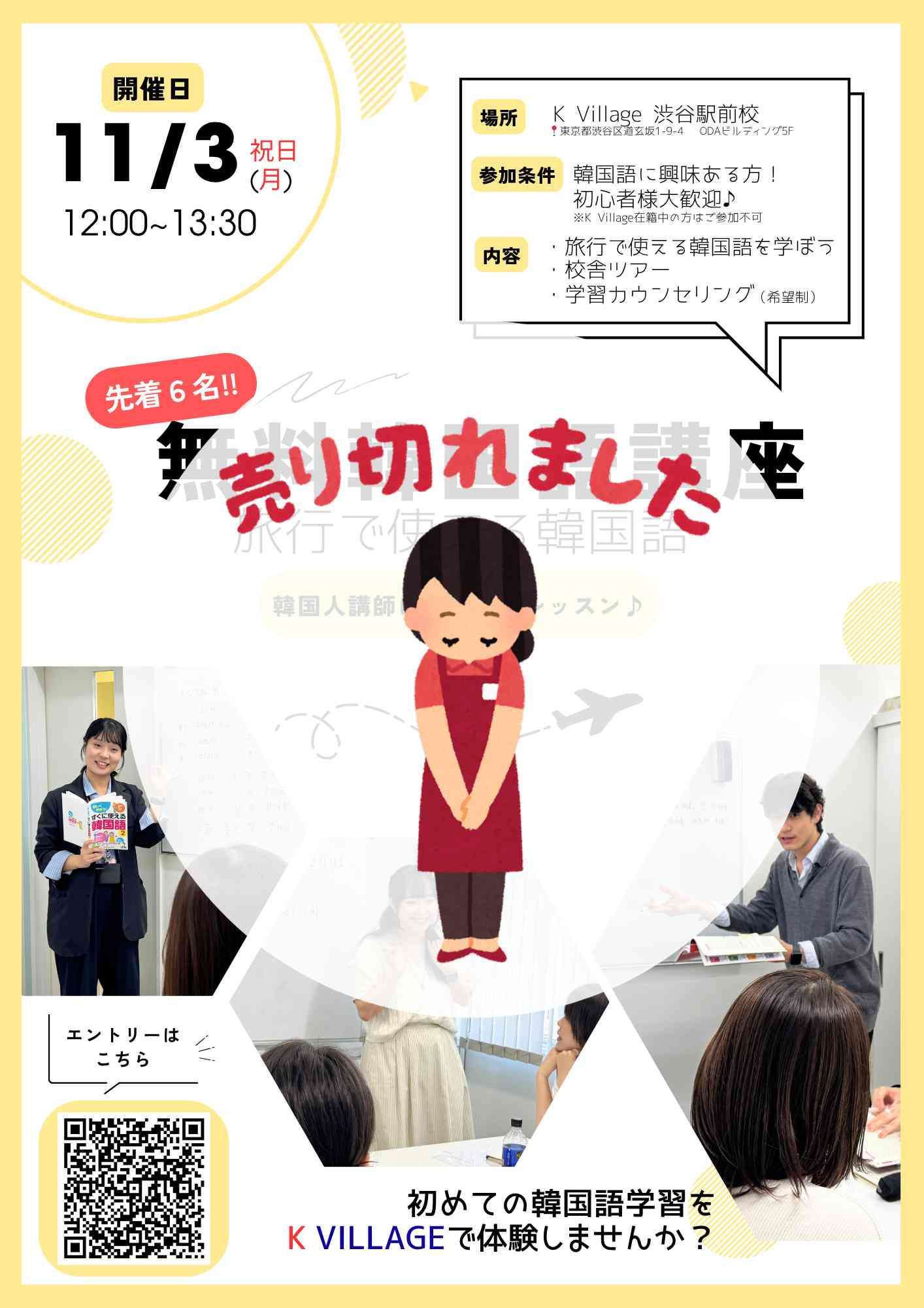 韓国語と言えば「K Village 韓国語」。生徒さんからたくさんのお声をいただき、ついに渋谷に開校決定!