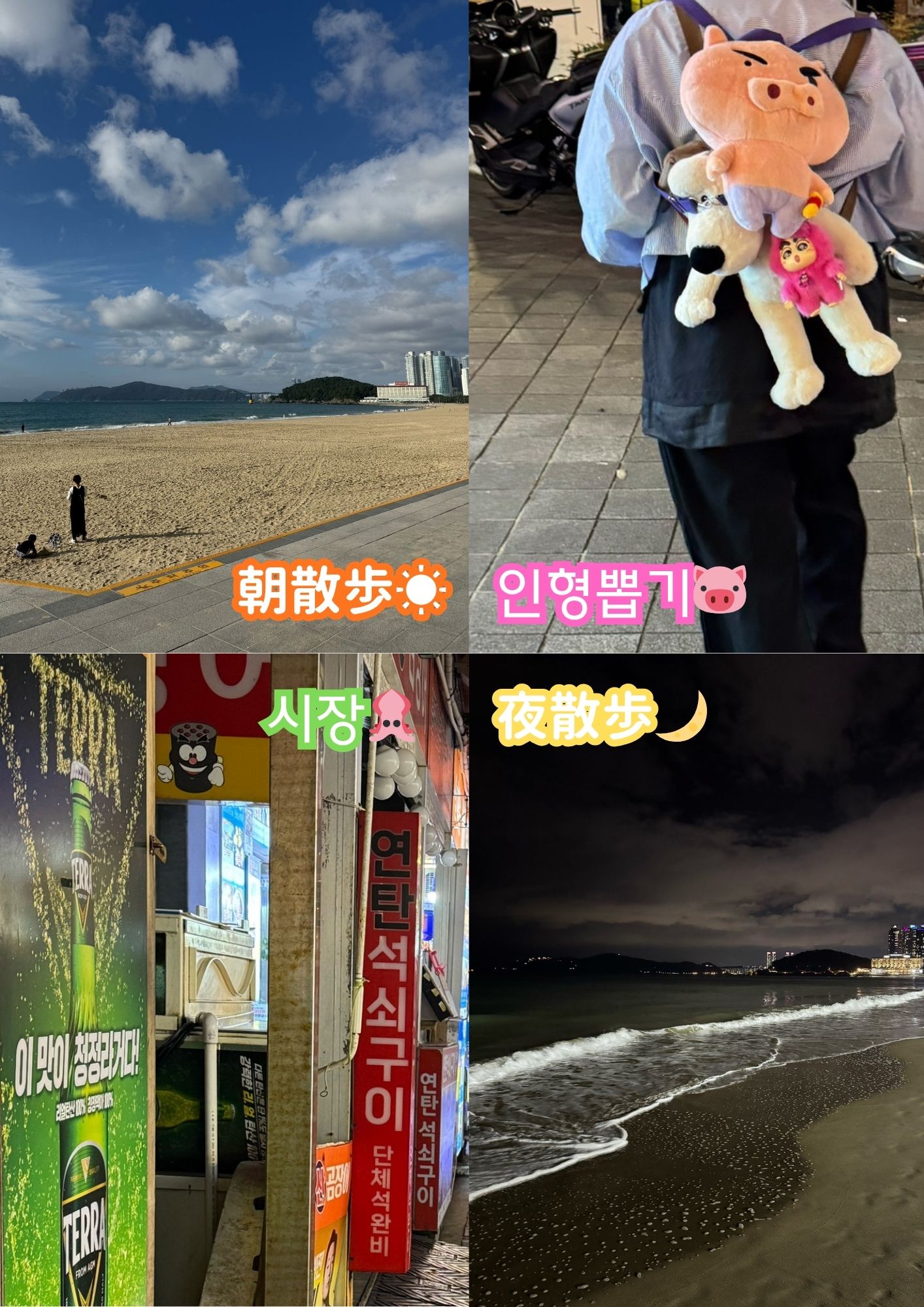 海雲台から徒歩5分もかからず朝も夜も海岸を