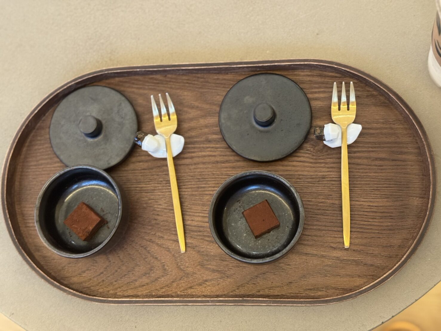 チェックインの際、案内された席に座りチョコレートをいただきました🍫