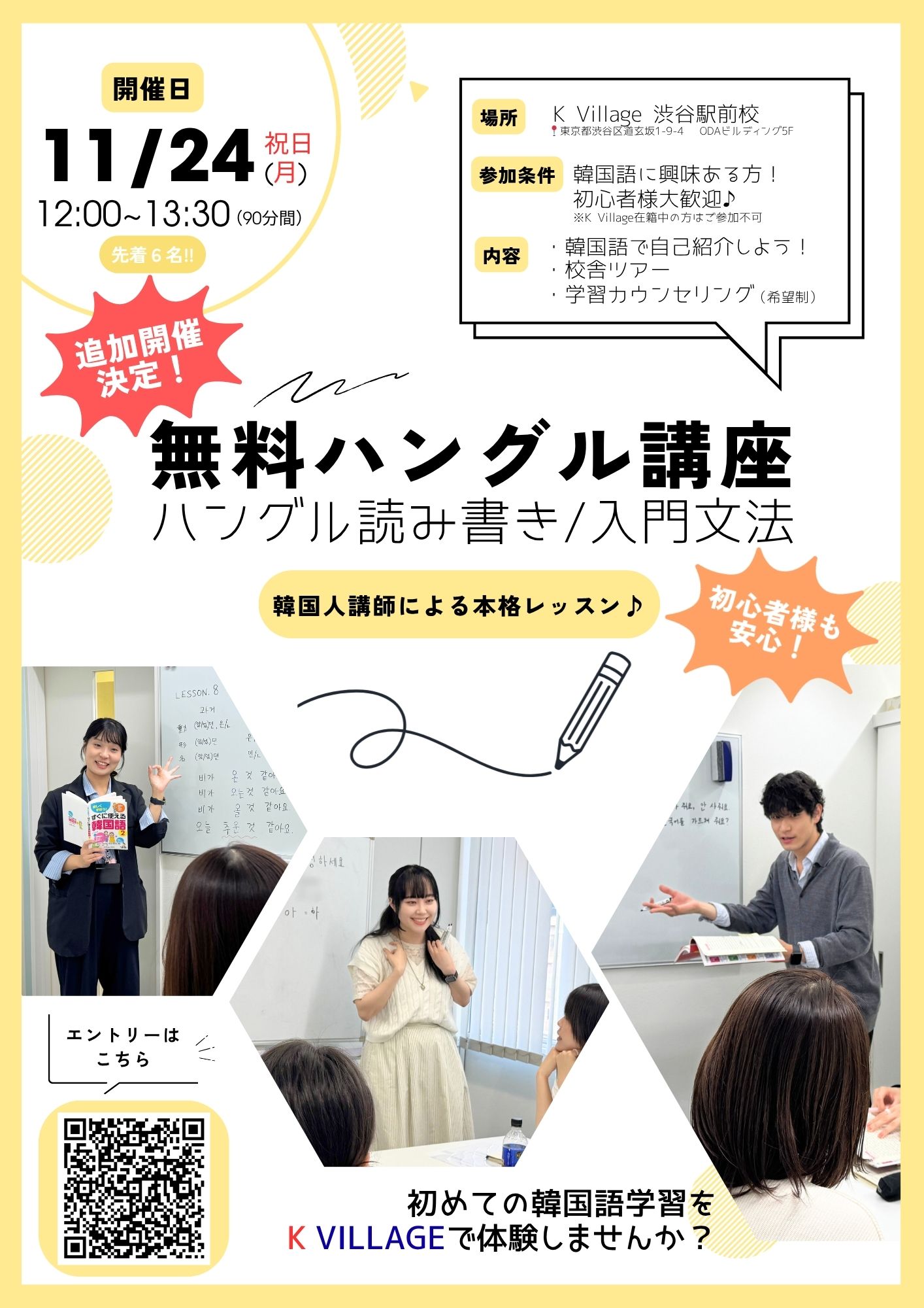 【追加開催決定!】無料ハングル入門講座✎