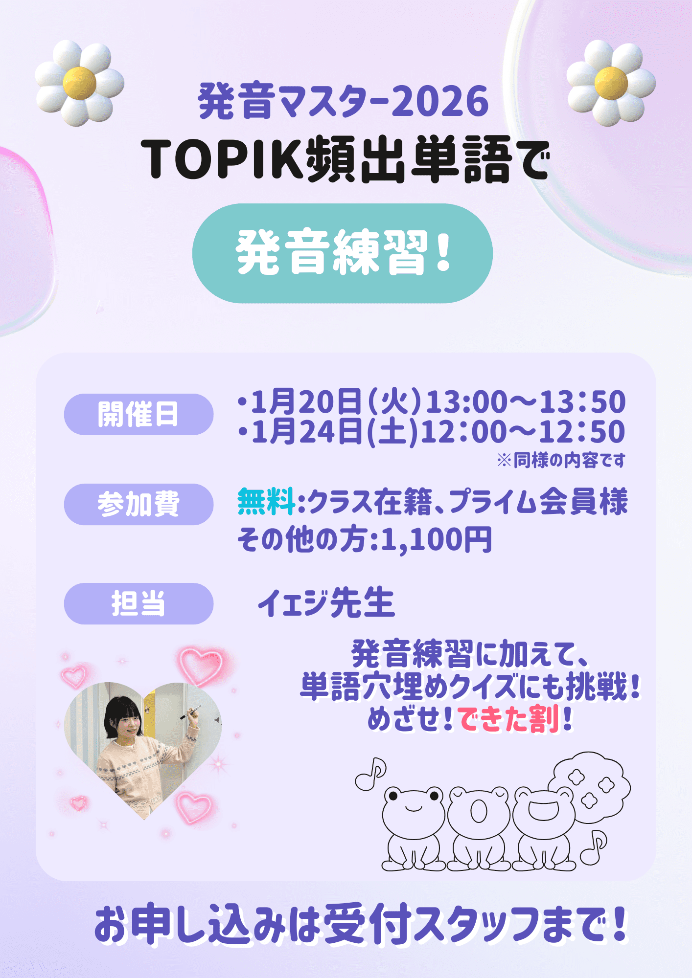 【韓国トレンド/発音練習】1月特別講座のお知らせ