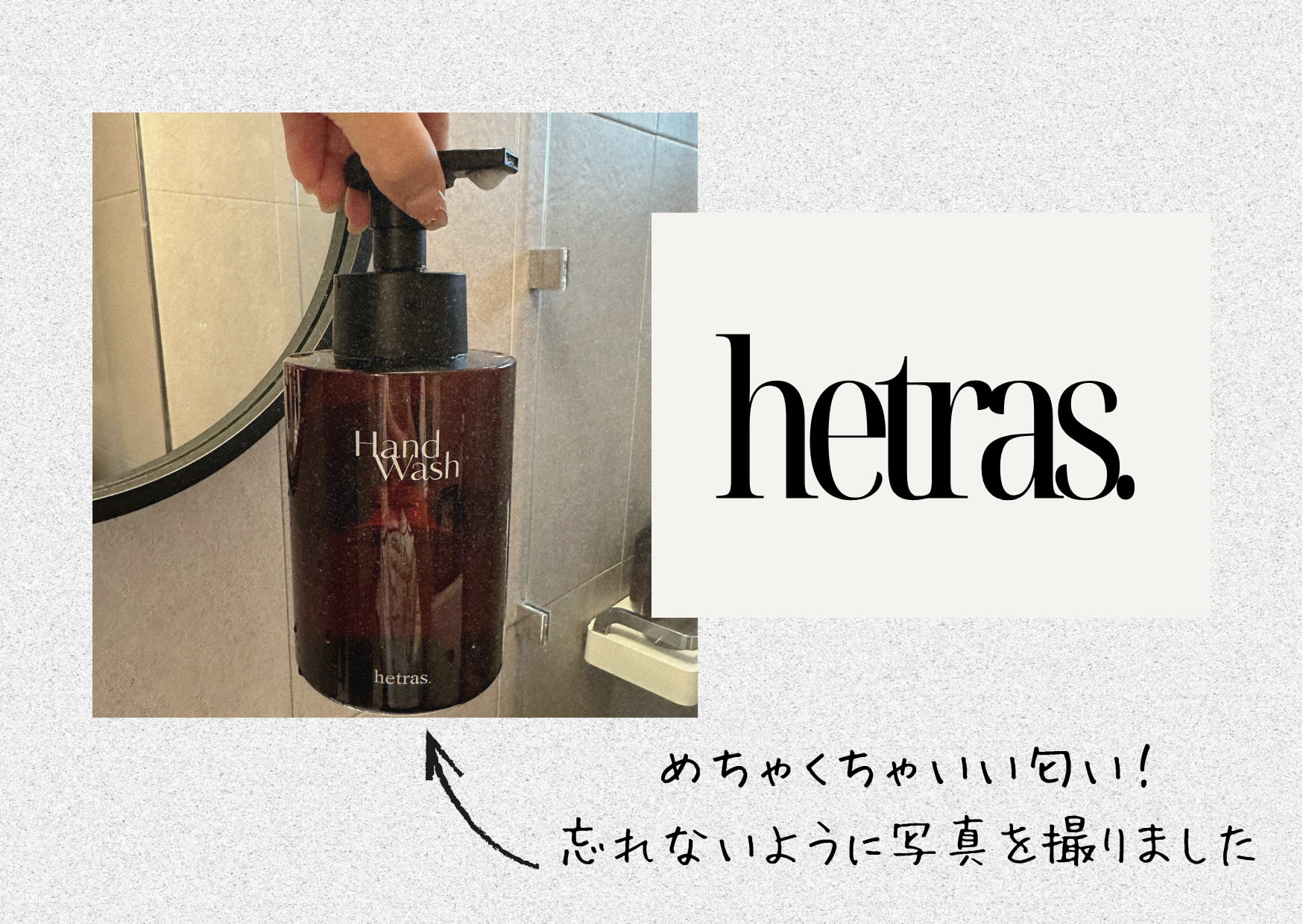 韓国旅行に行った際ホテルのハンドウォッシュがhetras.を使用しておりすごく香りがよくてビックリしました😳