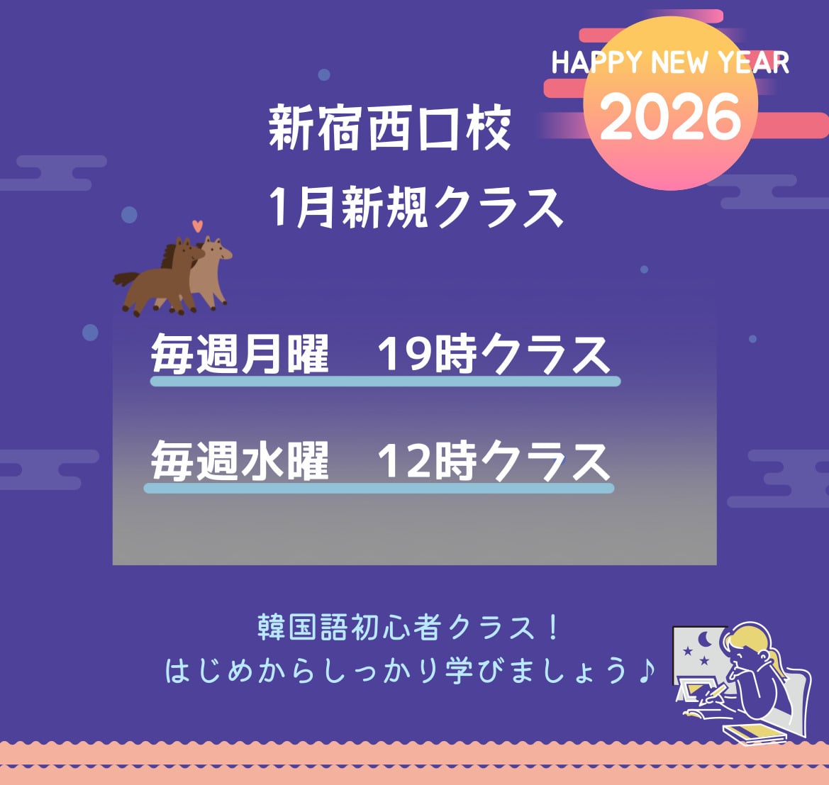 初心者向け韓国語クラスも毎月ご用意!