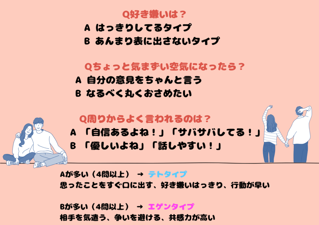 「自分、完全にテトだと思ってたけど恋愛ではエゲンかも…」