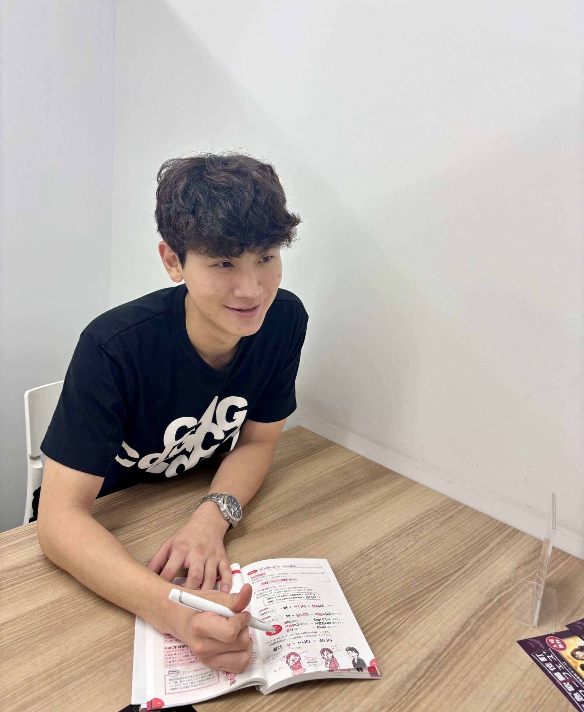 K Village 新宿西口校のジンヨン先生は、日本語だけでなく英語も堪能で、独学で学んだ経験を活かし、初心者でも早く理解して話せると評判の講師!