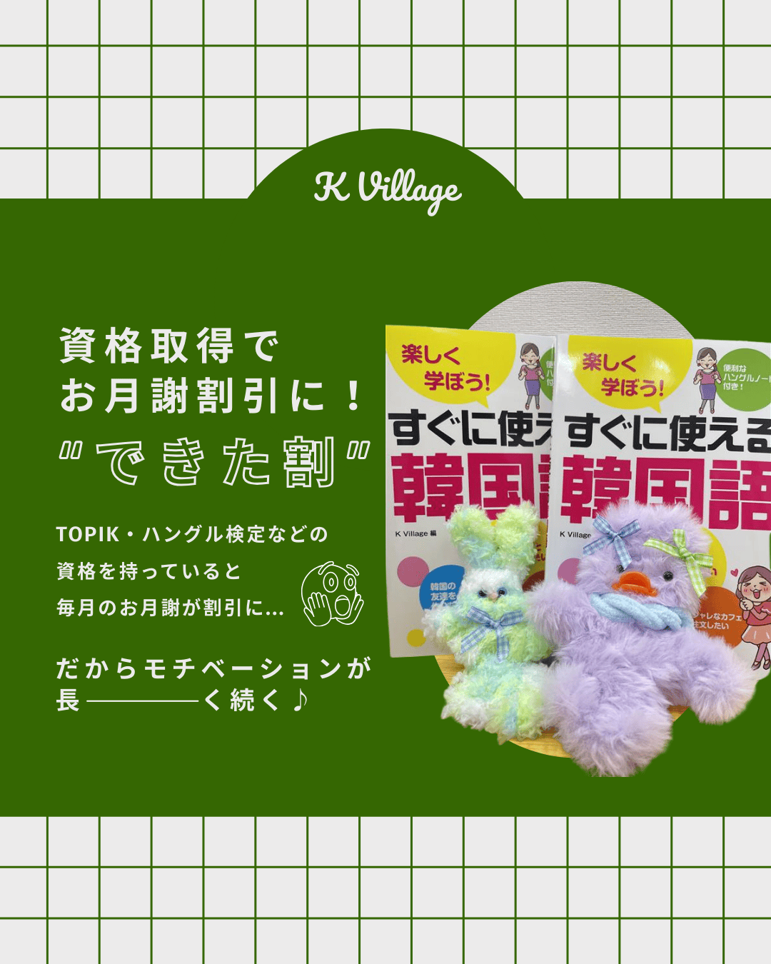 Kvillage生徒様限定でTOPIKⅠ&Ⅱの短期集中講座を1年に3回開催しており、高い合格率が出ています!実際の模擬レッスンや添削サービスもあり大変好評なのでぜひ申込してみてください。