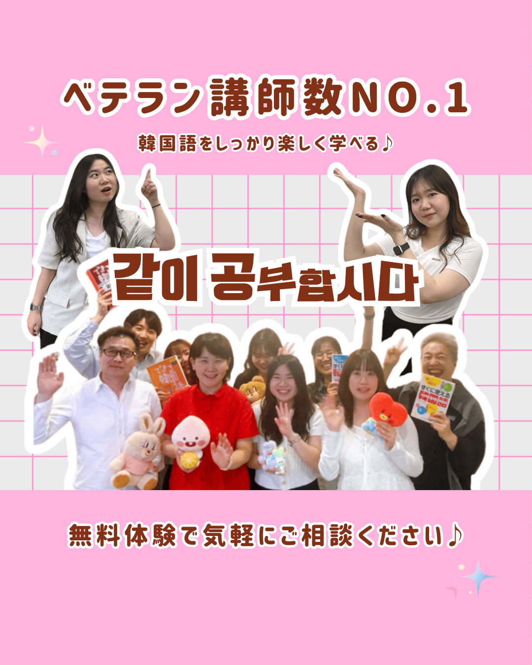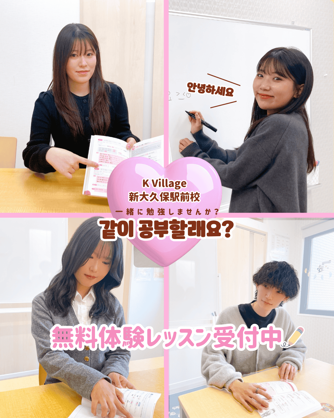 韓国語初めての方も大歓迎です!K Villageにいらっしゃる生徒さんもハングルが読めない状態からスタートしているので仲間は沢山いますよ♪