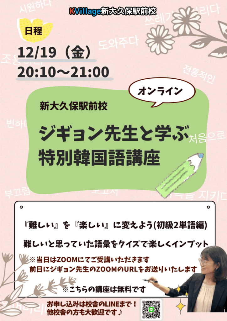 当日は大人気のベテラン講師ジギョン先生が難しい語彙をクイズ形式で紹介してくれます😌