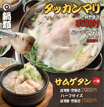 総合韓国料理のお店。サムギョプサルはもちろんタッカンマリやポッサムなども楽しめる!