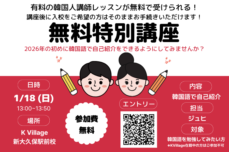 【PR】K Village 韓国語K Village 韓国語は16,000人が通う日本最大の韓国語教室。講師は全員日本語もバッチリ。受付には韓国留学経験もある日本人スタッフもいて安心。
