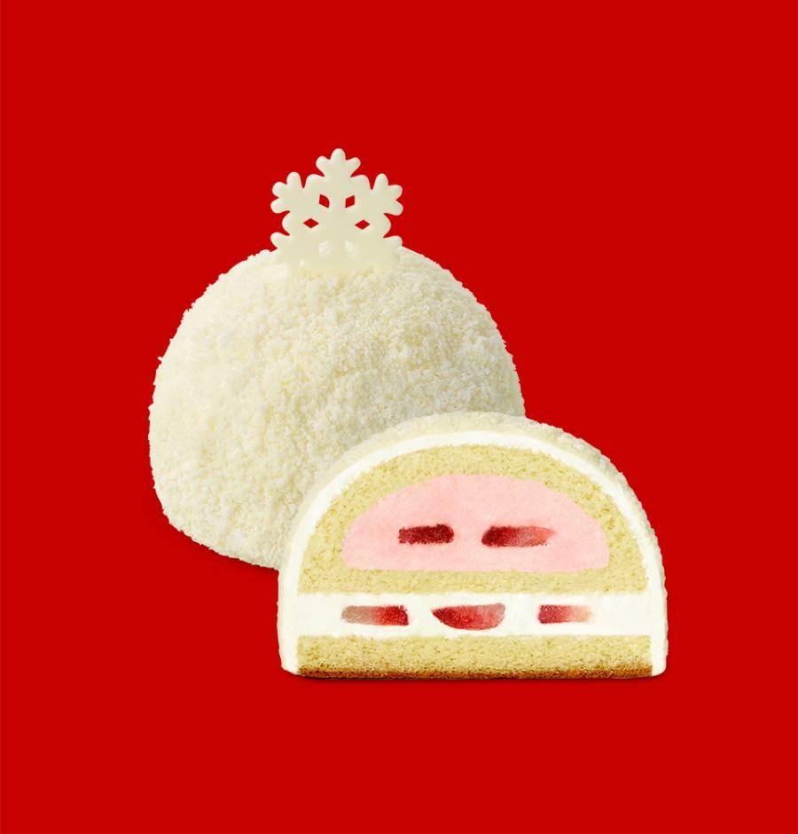 降り積もった雪を表現し、ホワイトクリームといちごクリームが混ざり合った冬にぴったりのケーキ⛄