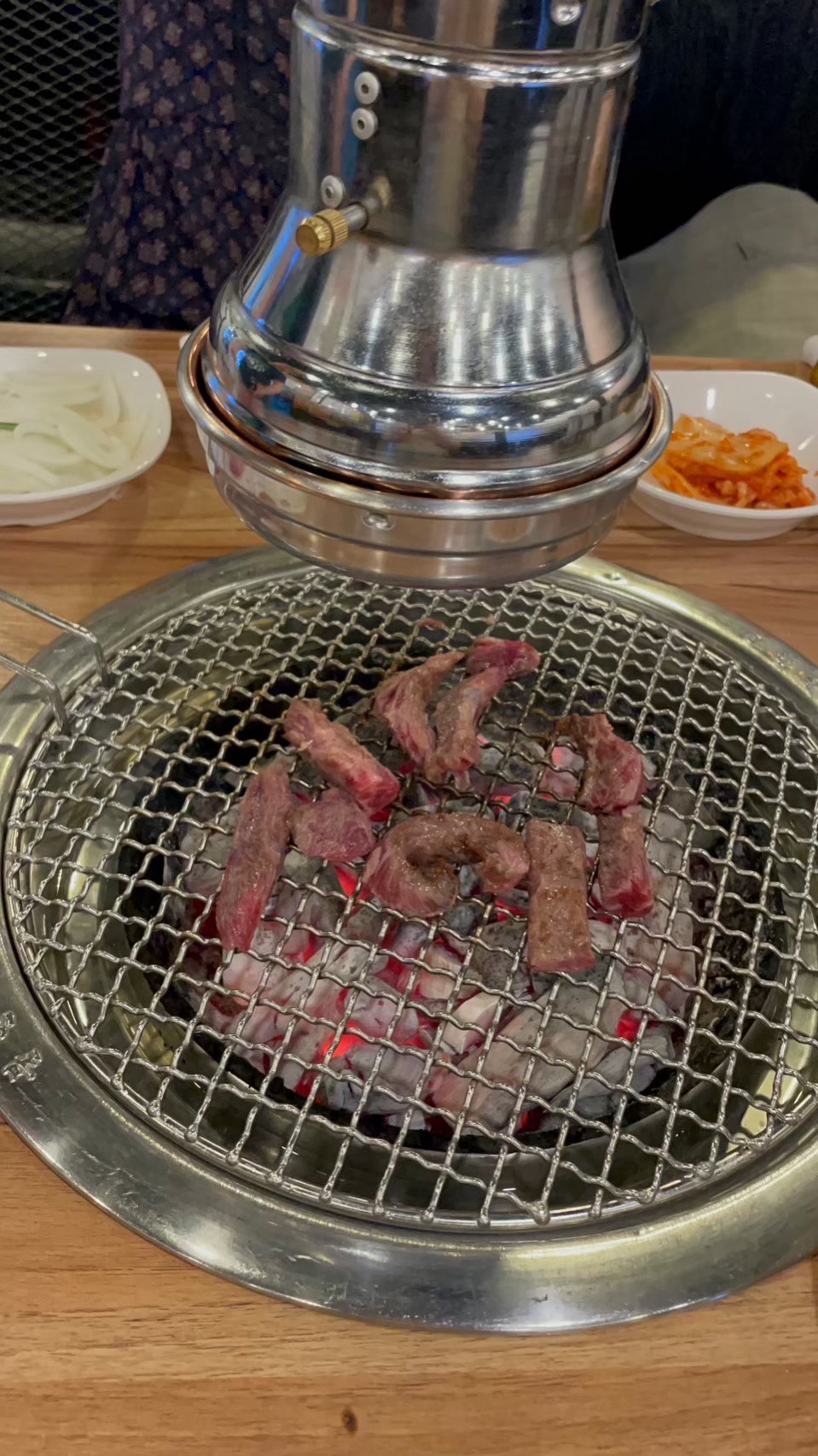 スウォンのカルビは厚切りの牛カルビを塩ベースで味付けし、炭火で焼き上げるスタイルです。
