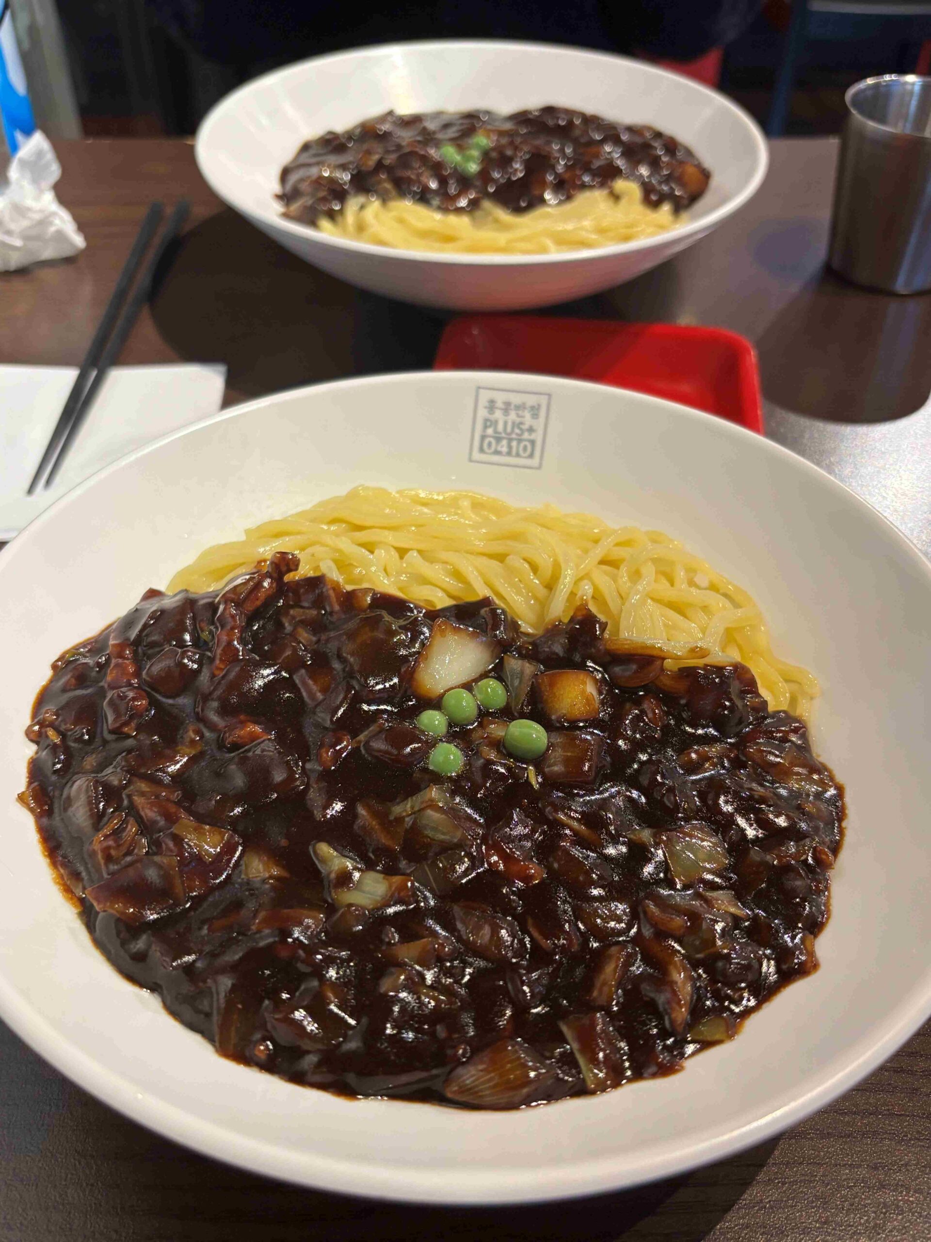 このお店は韓国ちゃんぽん専門店として有名ですが、私は辛いものが苦手なので今回はチャジャン麺(韓国語では짜장면)を注文しました!