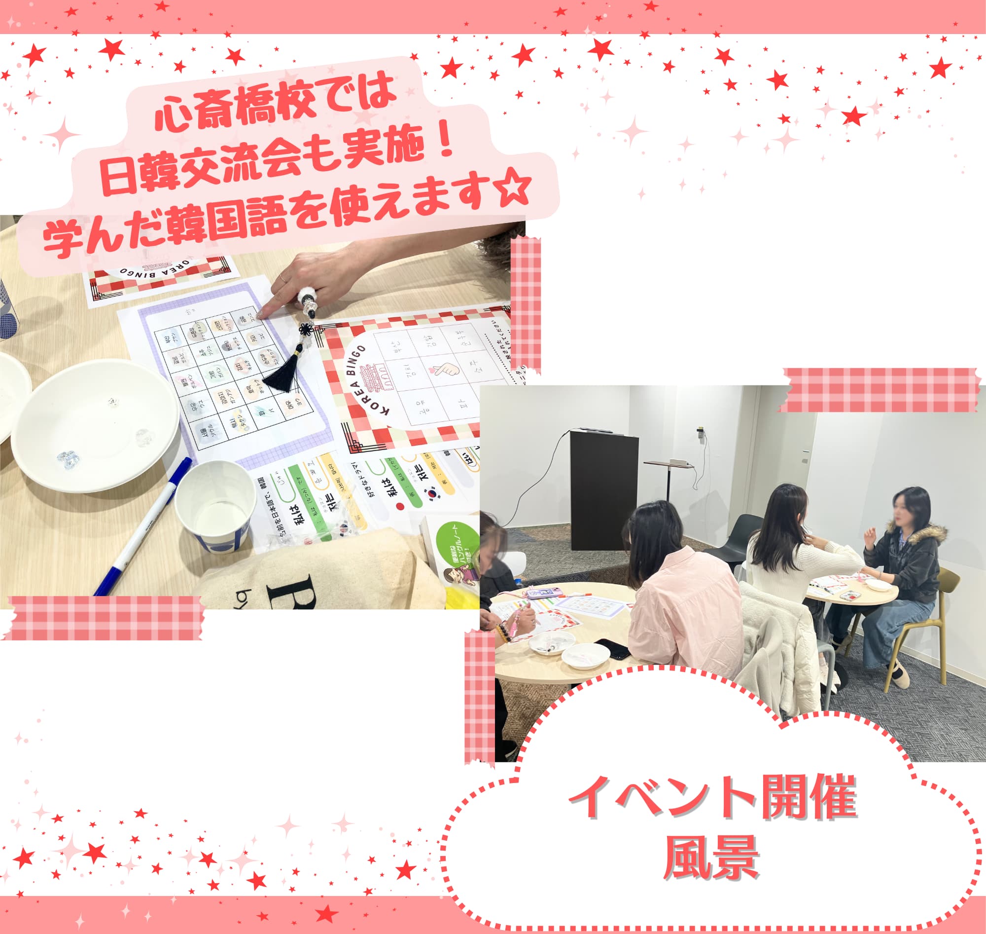 実践的な韓国語を使えたり、韓国人のお友達作りができるイベントも盛りだくさん☆