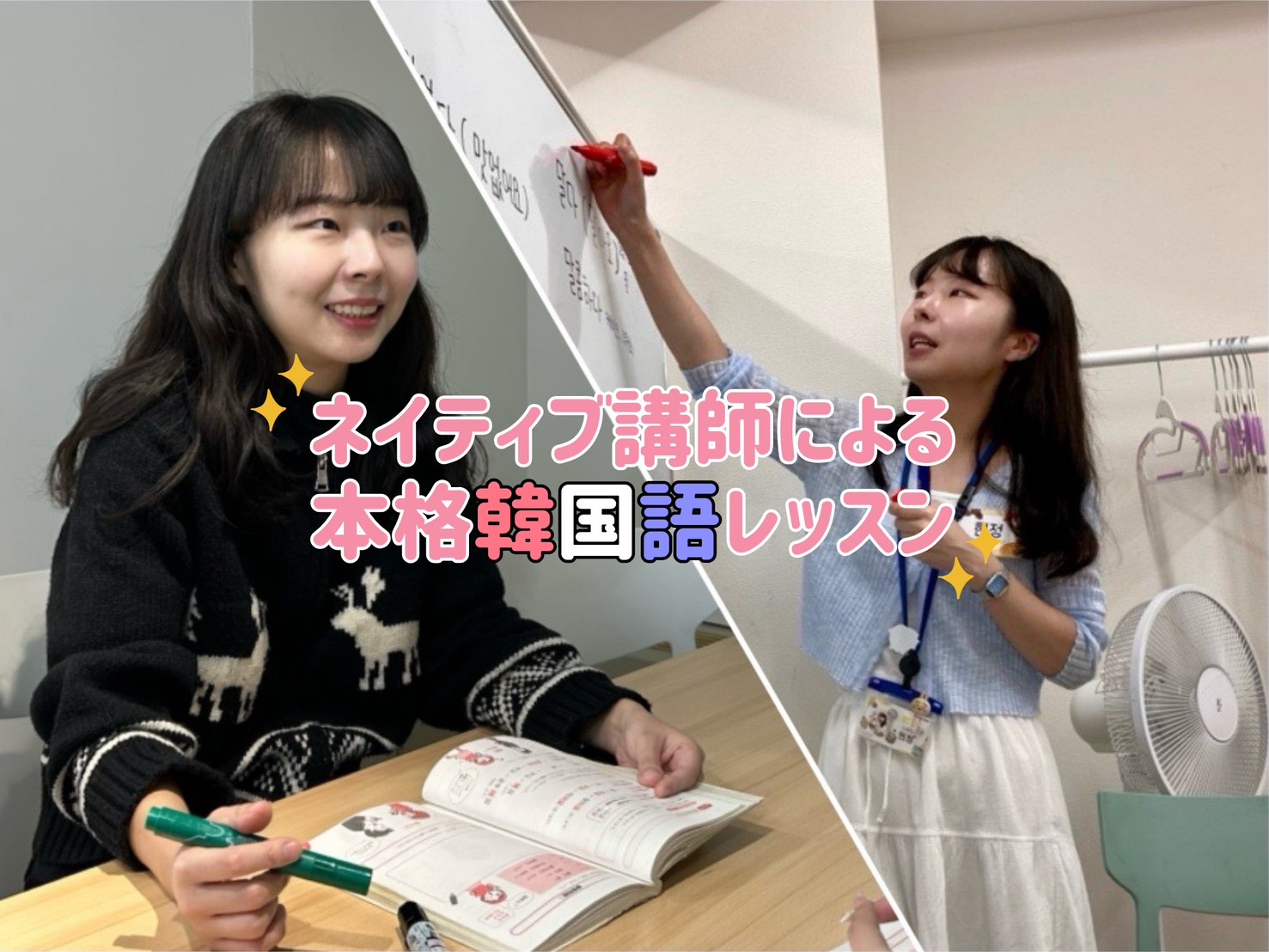 2:1のレッスンで、気兼ねなく仲の良いお友達と韓国語を習うことが出来ます。