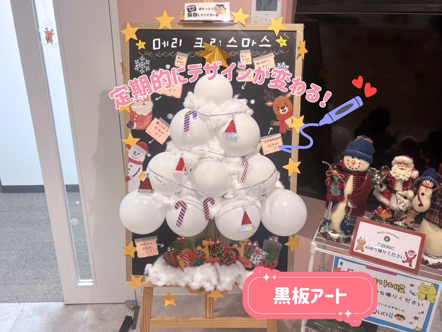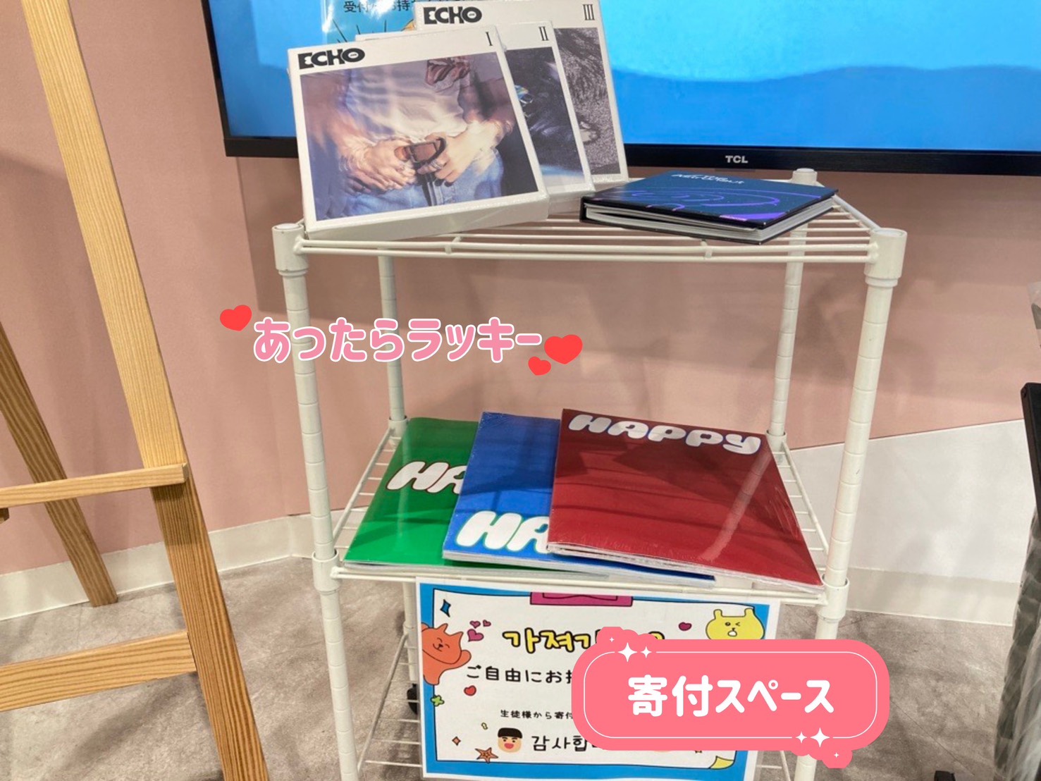 入口横のモニターでは、韓国の最新情報を配信中!なんば校オリジナルのネオンサインにも注目☆