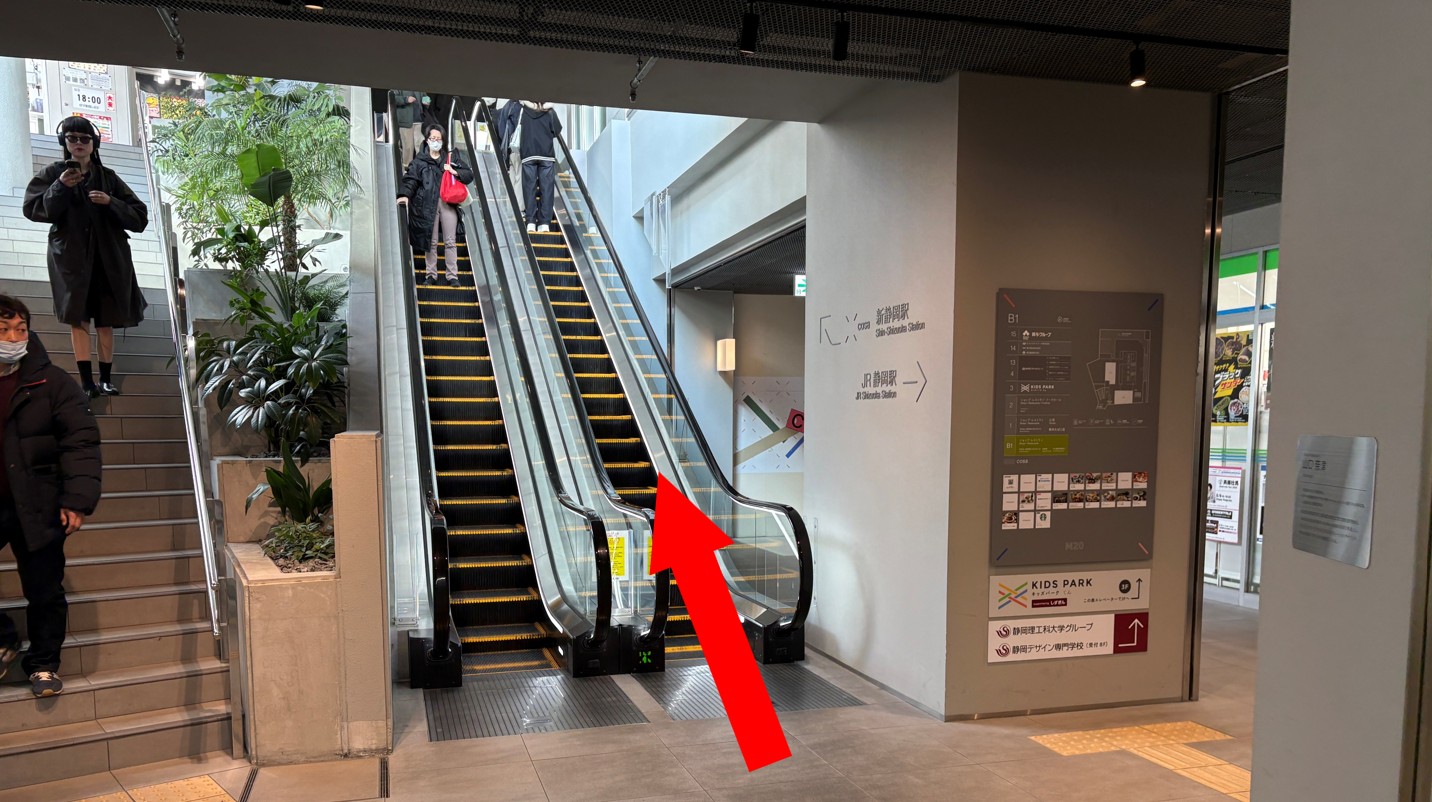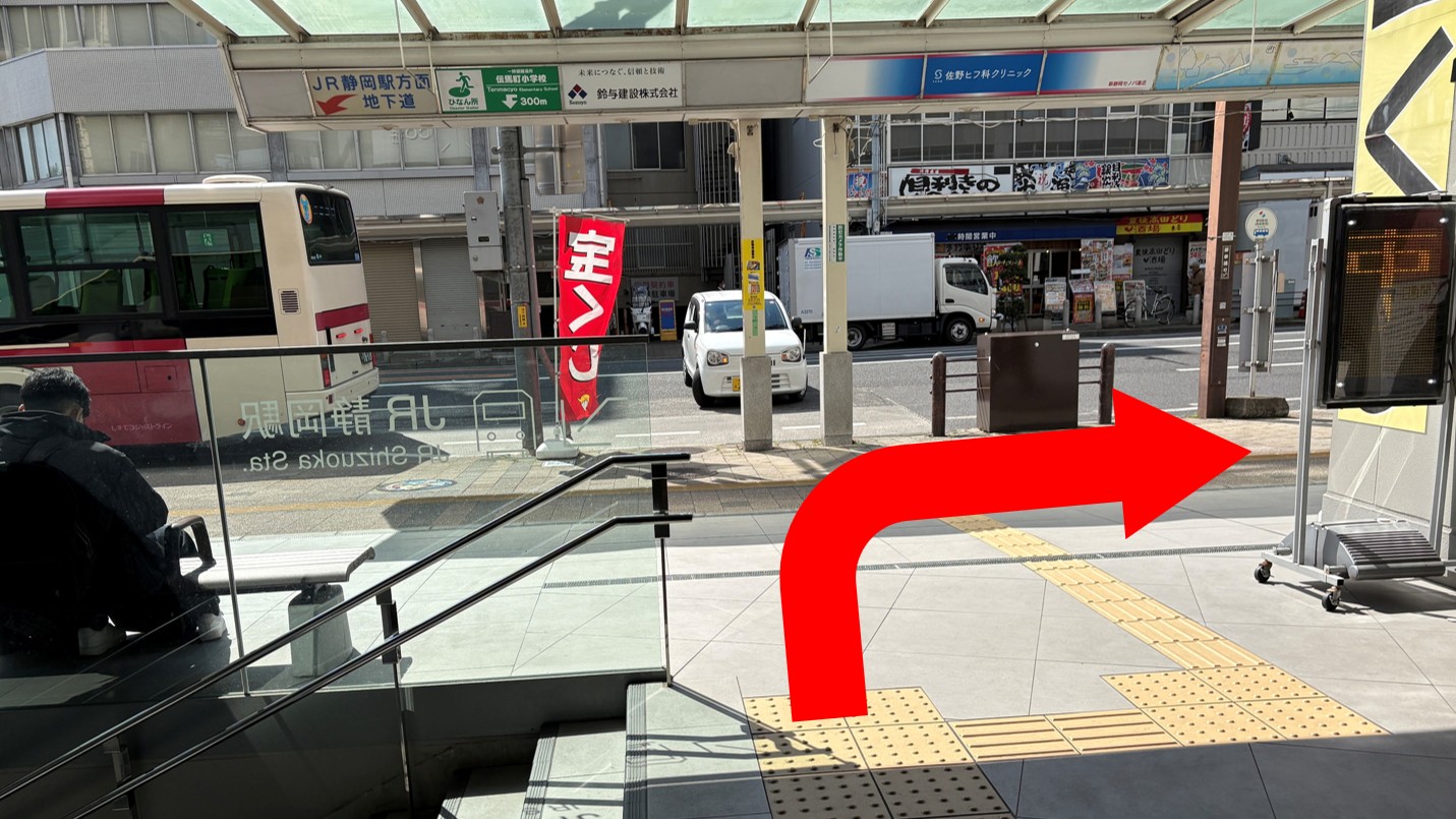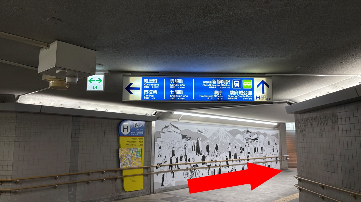 右側に進んでいきます。”新静岡駅”と書いてある方向に進んでください。白い絵画が目印です。