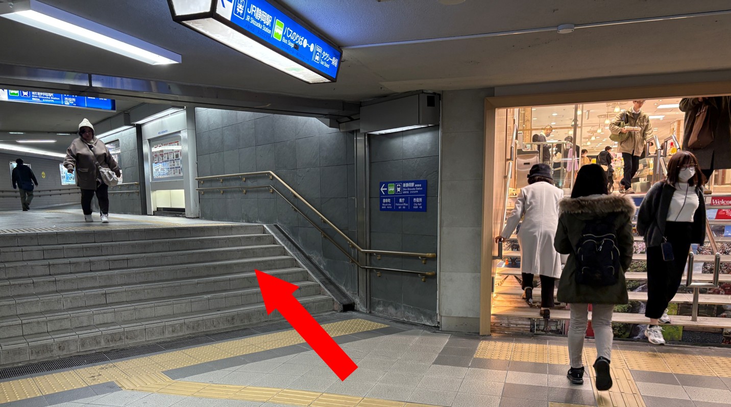 ファミリーマートが見えましたら、エスカレーターか階段を使用して上に上ります。