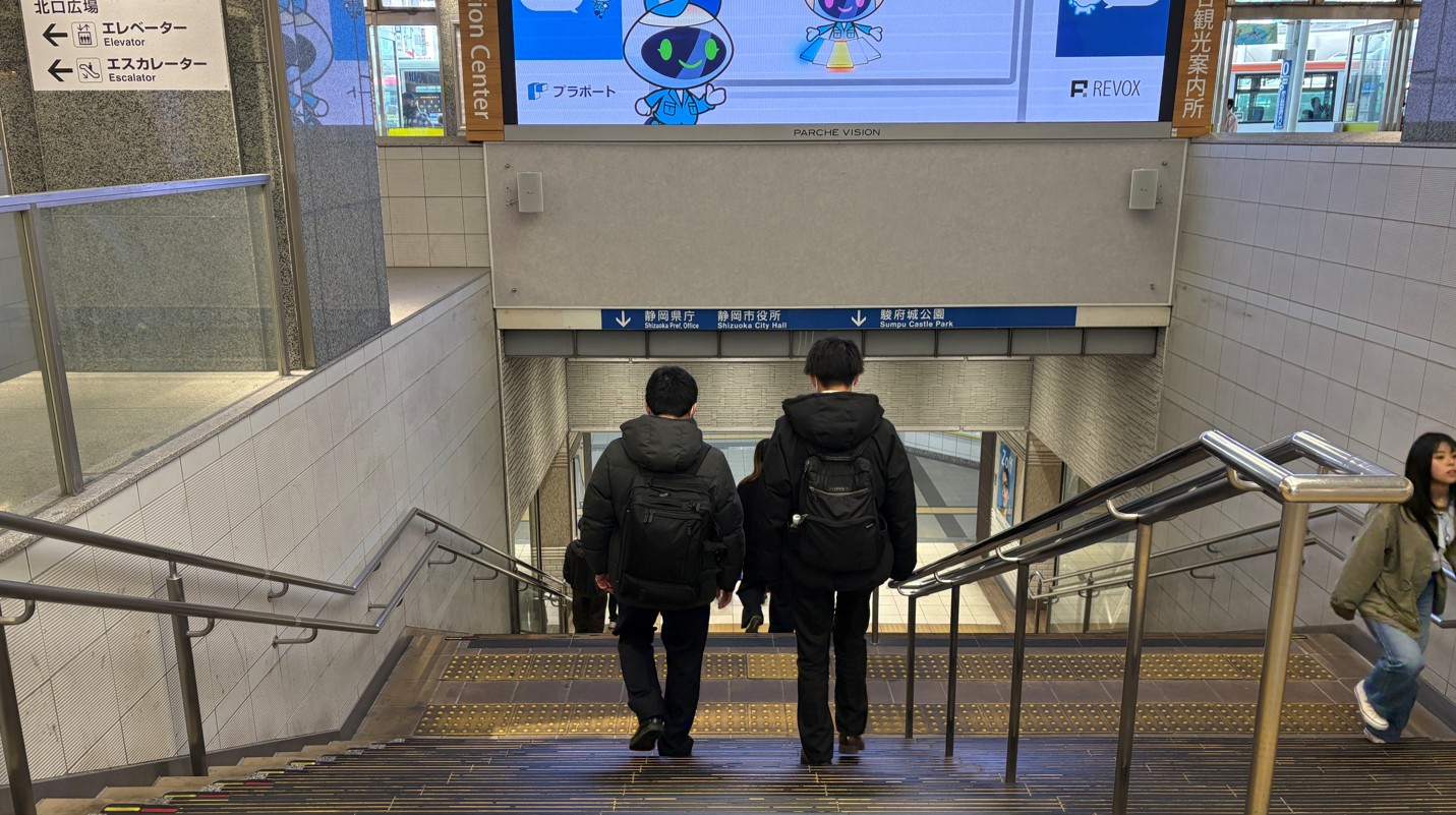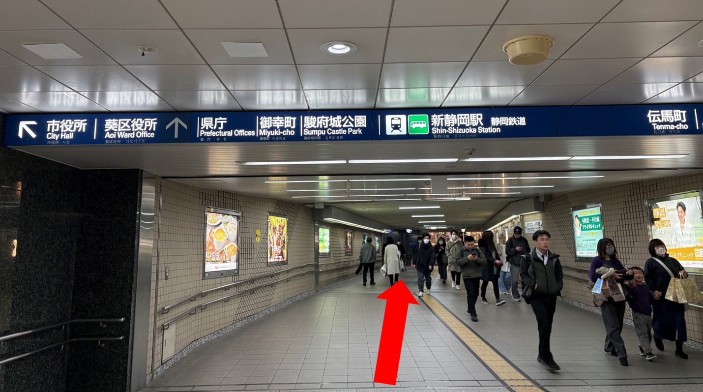突き当りまで進みましたら左側に短い階段がありますので、それを上って進んでいきます。迷ったら”新静岡駅”と書いてある方向に進んでください。