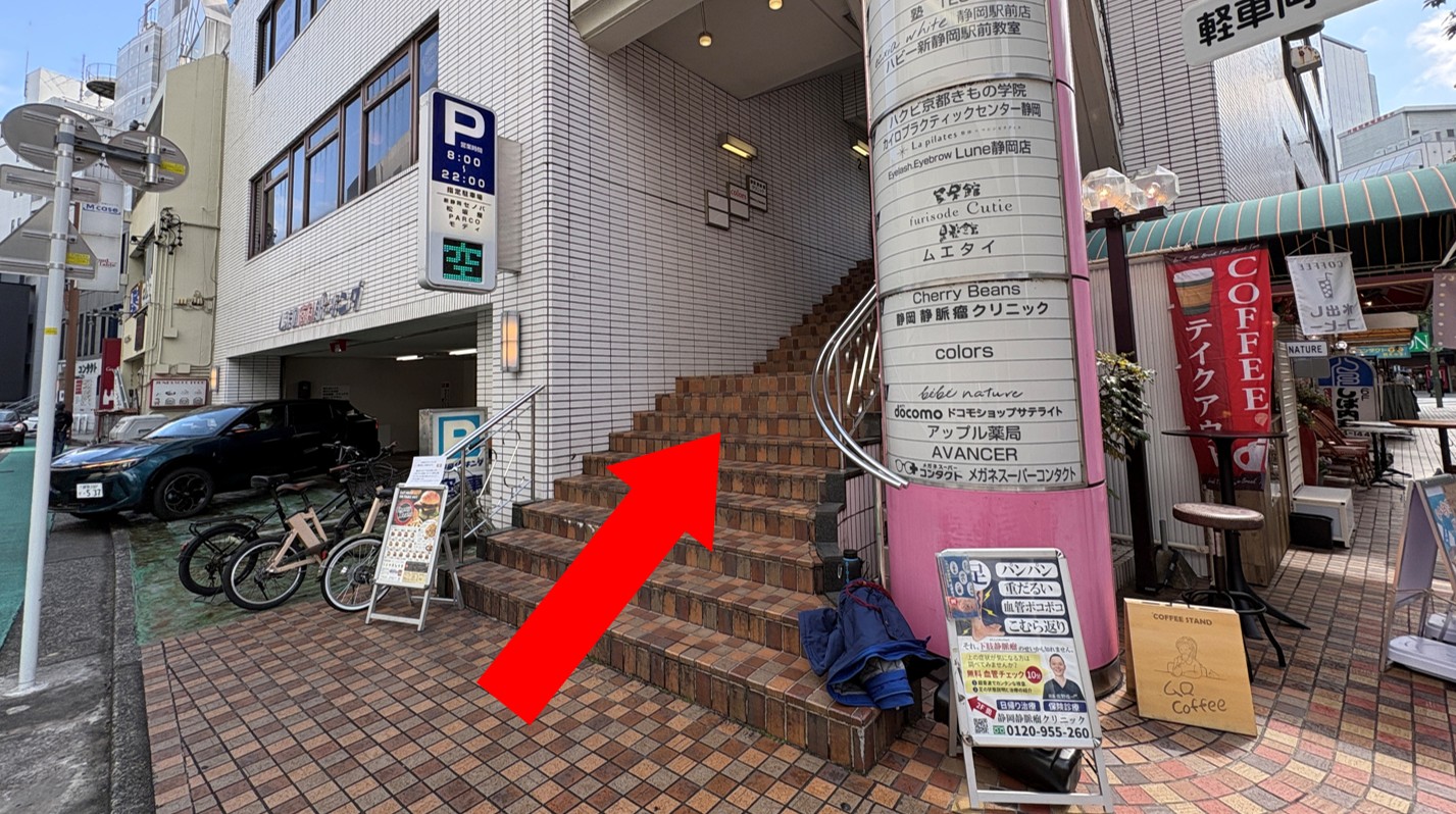 ピンクの柱の横にある階段を”3階”まで登ってください。