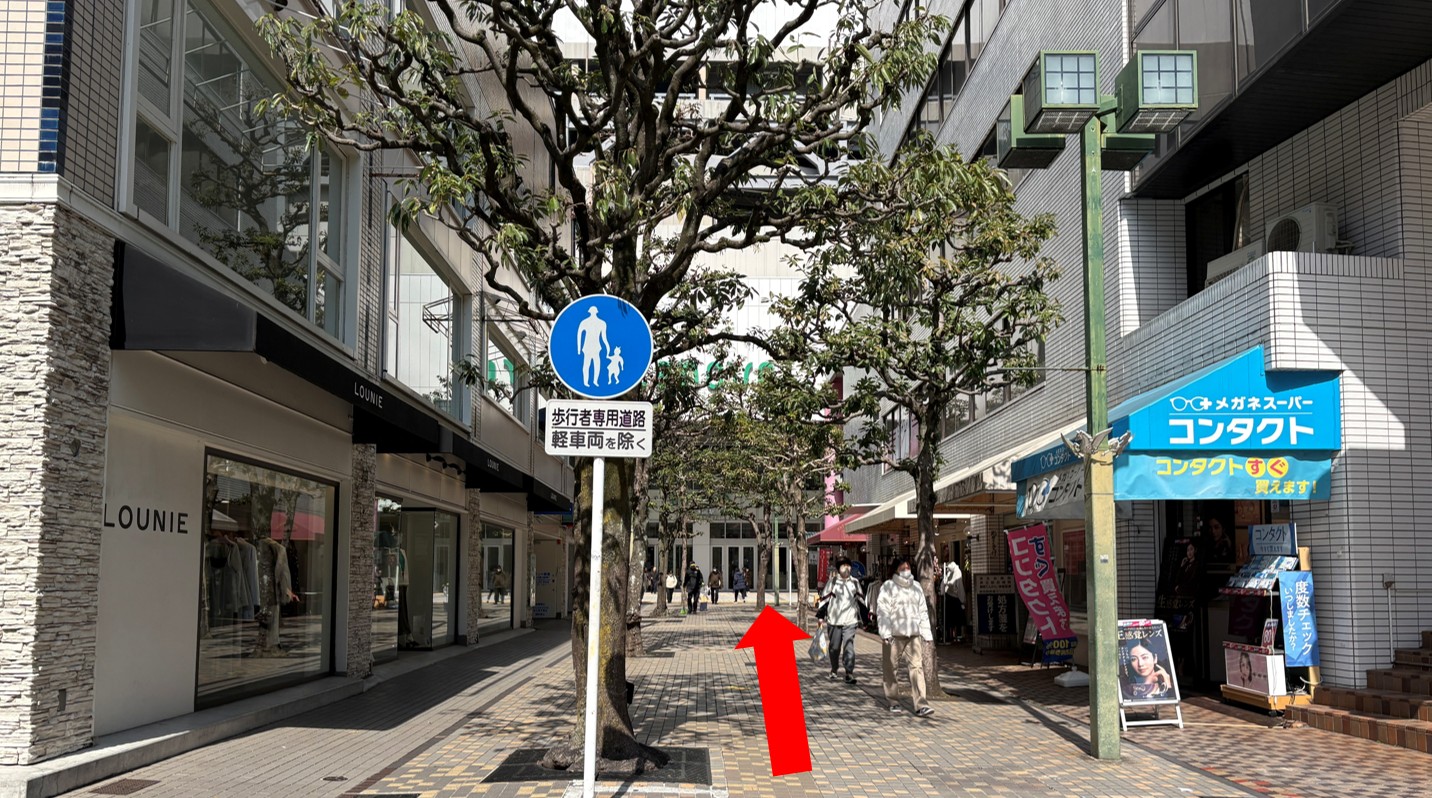 直進した先の交差点で既に建物が見えますが、もう一つの入り口から入っていただいたほうが教室まで近いので、セノバに向かって進んでください。
