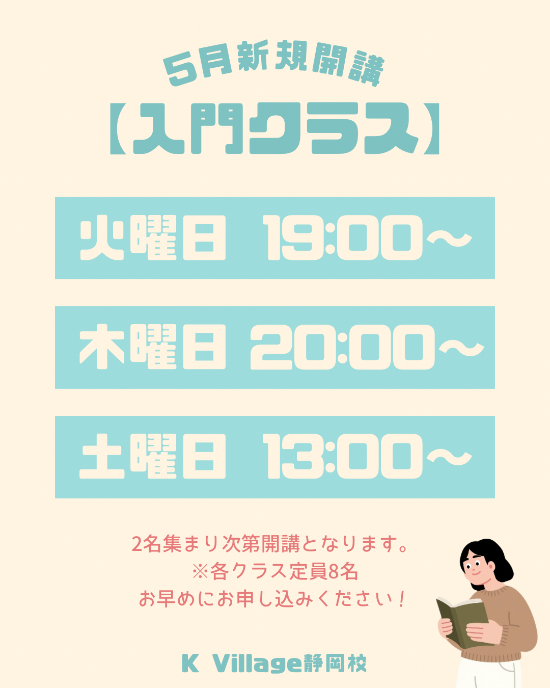 5月は以下の3つの曜日で開講予定です!