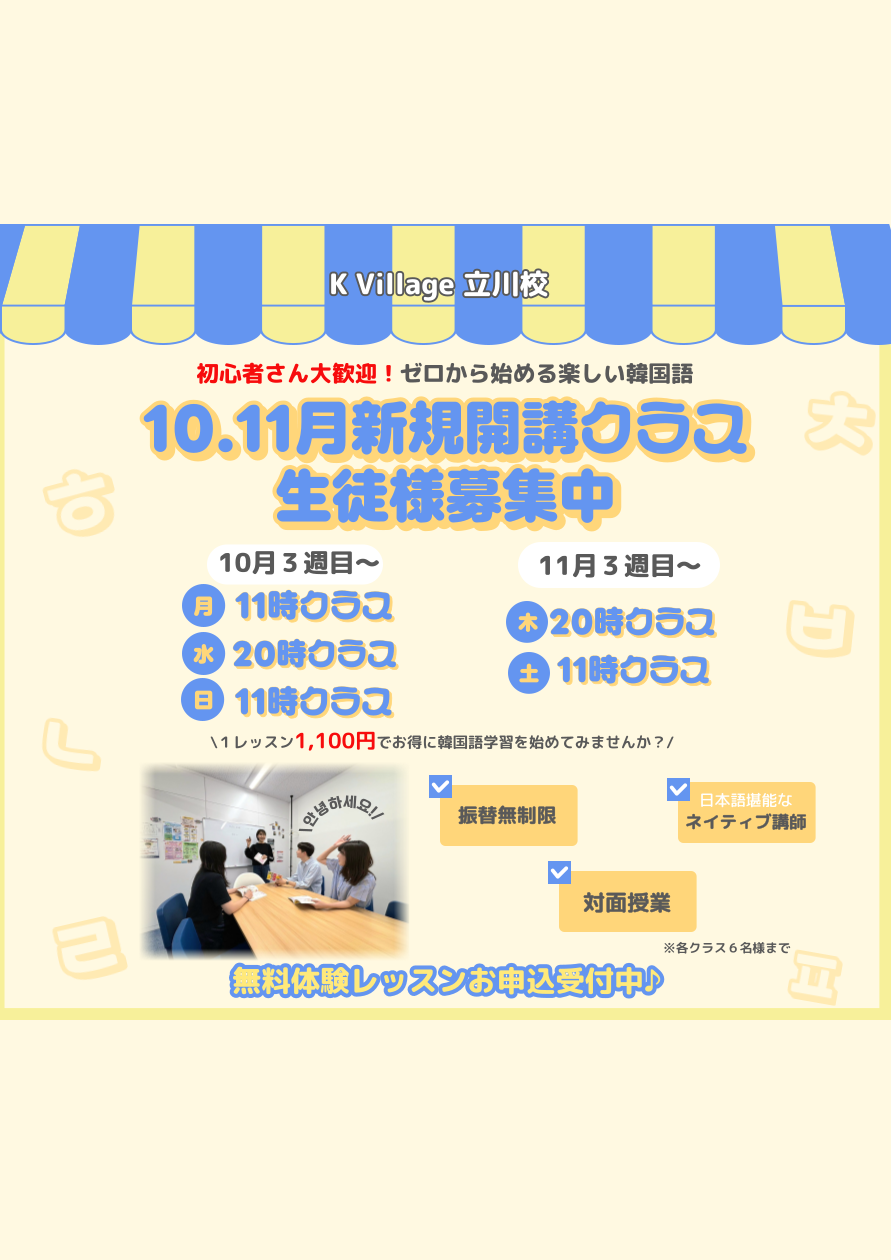 「本格的な韓流文化を感じながら立川で韓国語を学びたい!」そんな方におすすめな、日本最大の韓国語教室 K Village 韓国語 立川校
