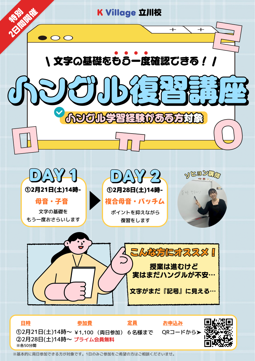 立川校のブログ | 2月は【ハングル復習講座 韓国語アナウンス道場 】