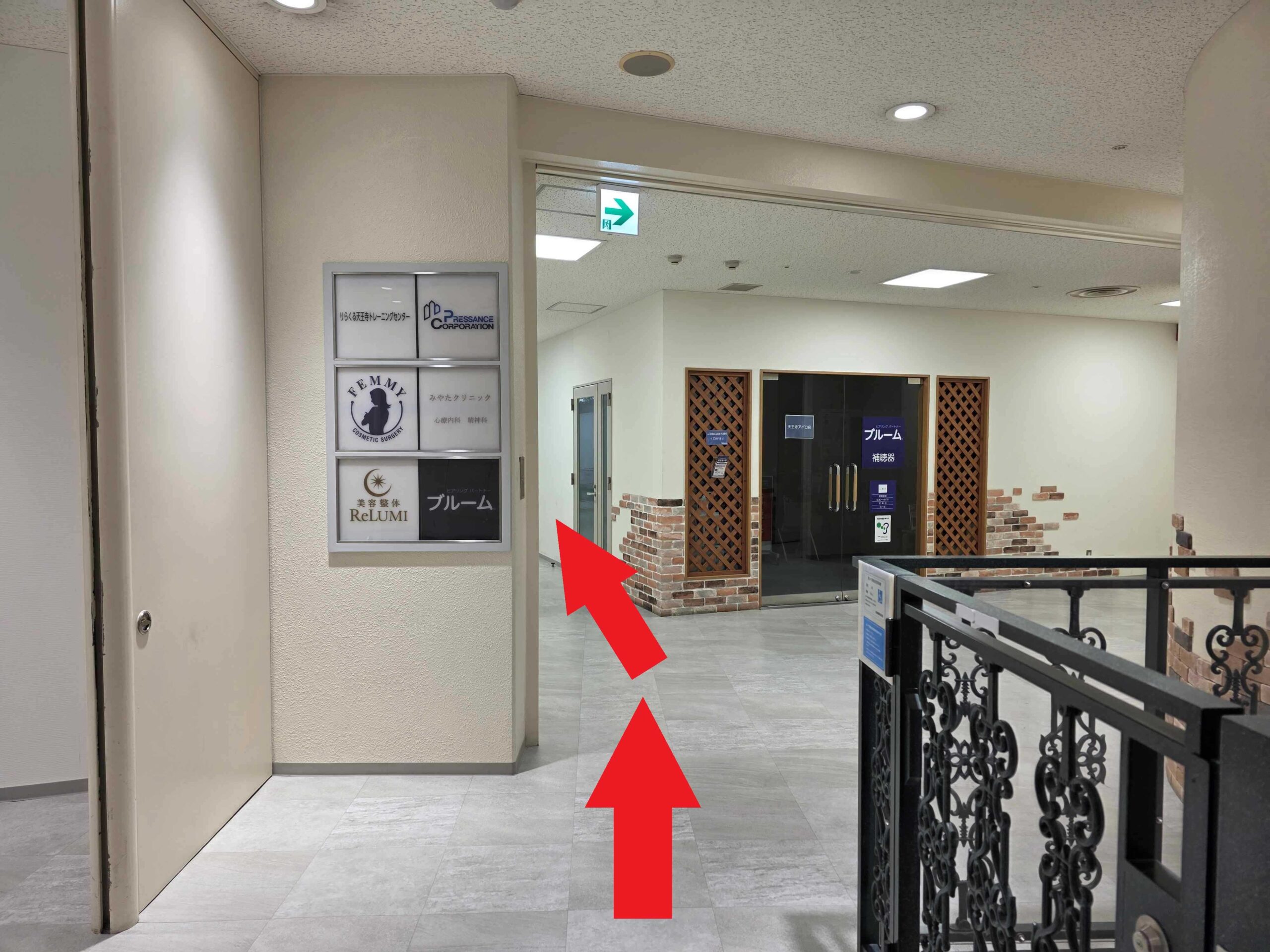 エレベーターを降り、正面の階段を上ります。