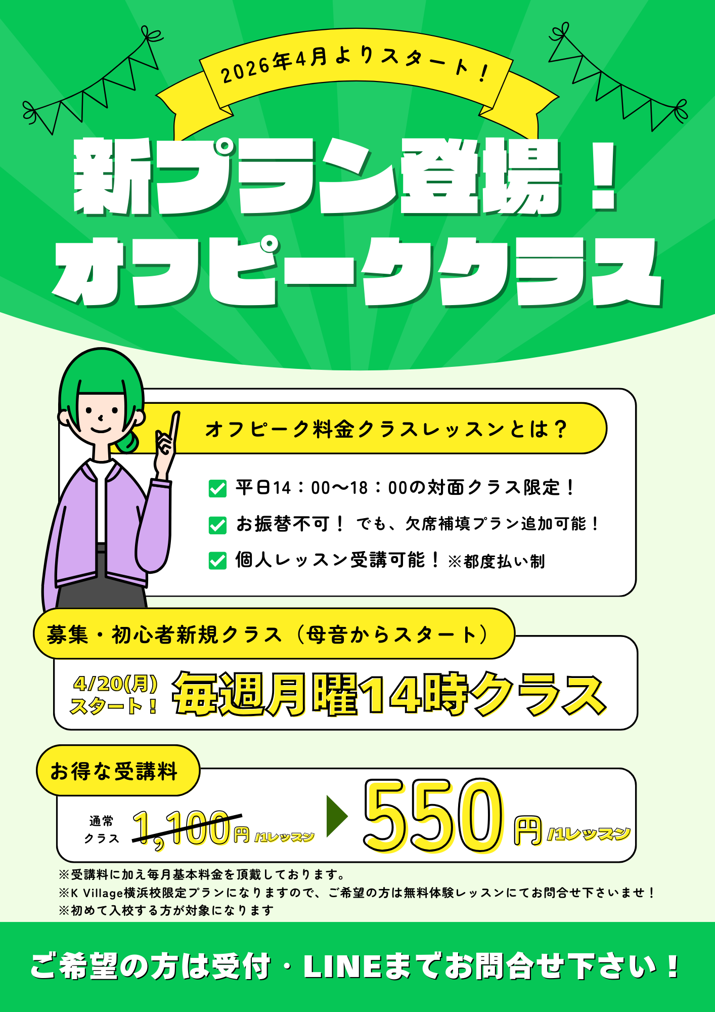 横浜エリアで対面クラス¥550は横浜校だけ!価格を抑えて本格レッスン✨