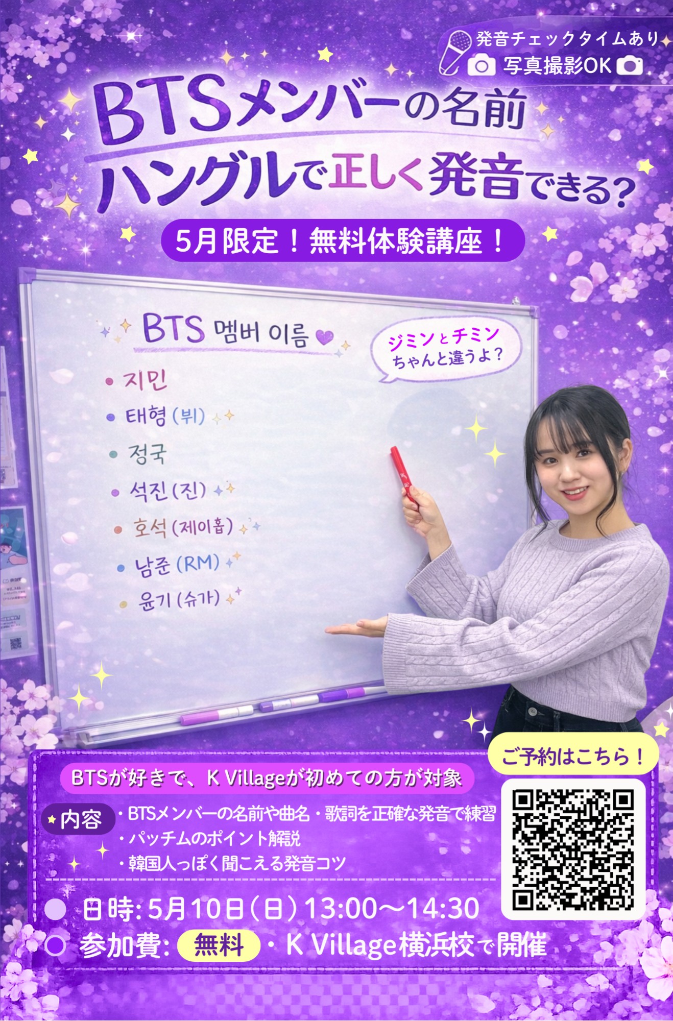 内容:BTSの名前・曲・歌詞を正しい発音で練習