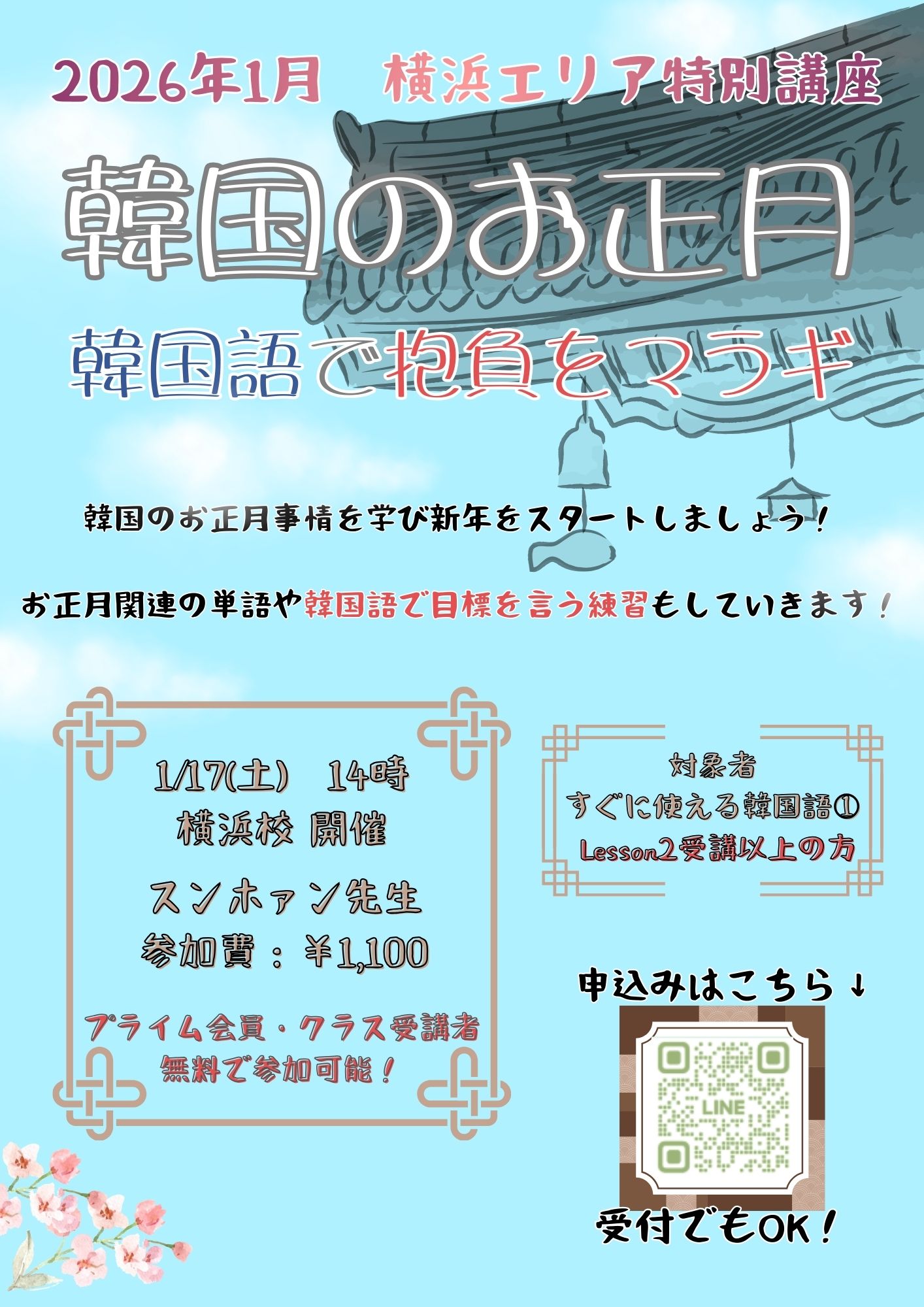 2026年一発目の特別講座はそんなお正月に合わせて≪韓国のお正月≫+≪抱負や目標を韓国語で表現≫の内容で実施予定となります!