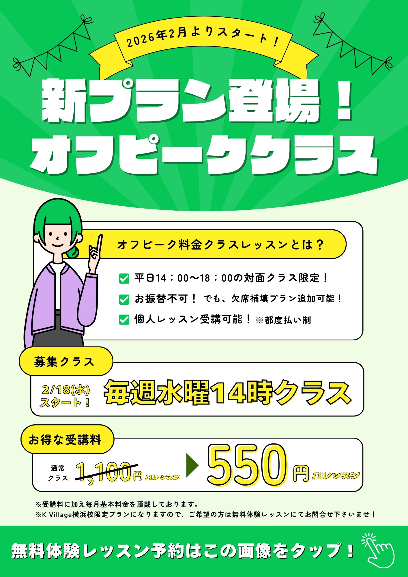 ・レッスン時間帯:平日14:00~18:00限定