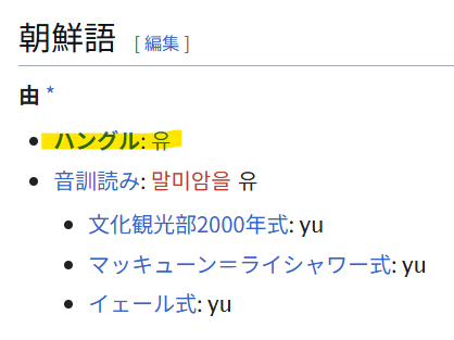 このような感じで、「由=유」ということが分かります♪
