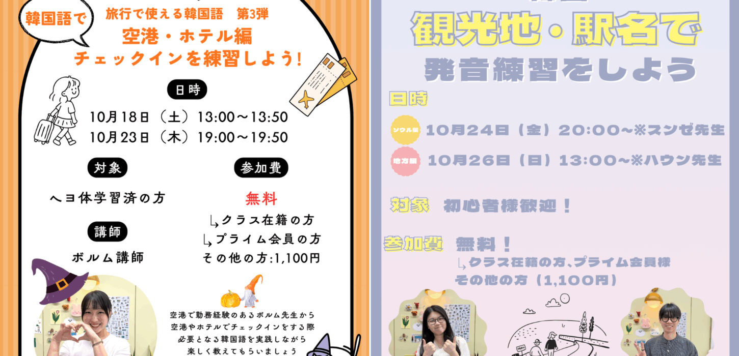 【韓国旅行に役立つ!】魅力だらけの10月イベント 여러분 안녕하세요! 今回のブログは渋谷駅前校10月のイベント告知です📢 旅行で役立つイベントばかりなのでぜひ参加してみてくださいね🤍 ˗ … 続きを読む 【韓国旅行に役立つ!】魅力だらけの10月イベント