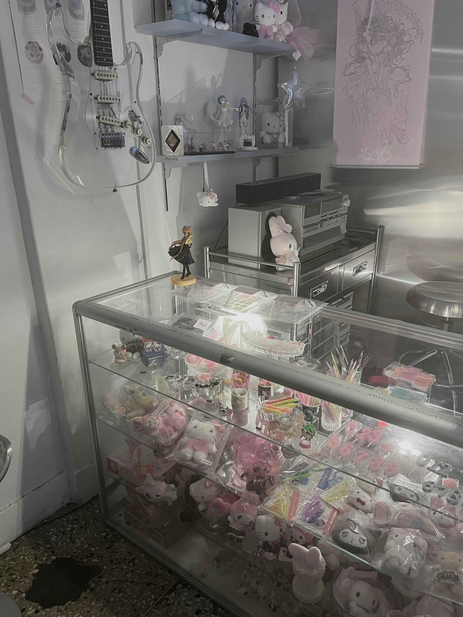 レジの横のショウウィンドウにはハローキティなどの可愛いグッズが飾ってあったり、