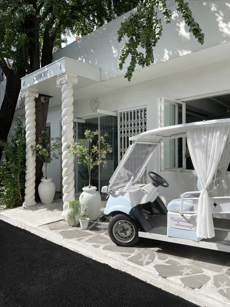 カフェの前には水色のワゴンがあってとっても可愛いんです!💕