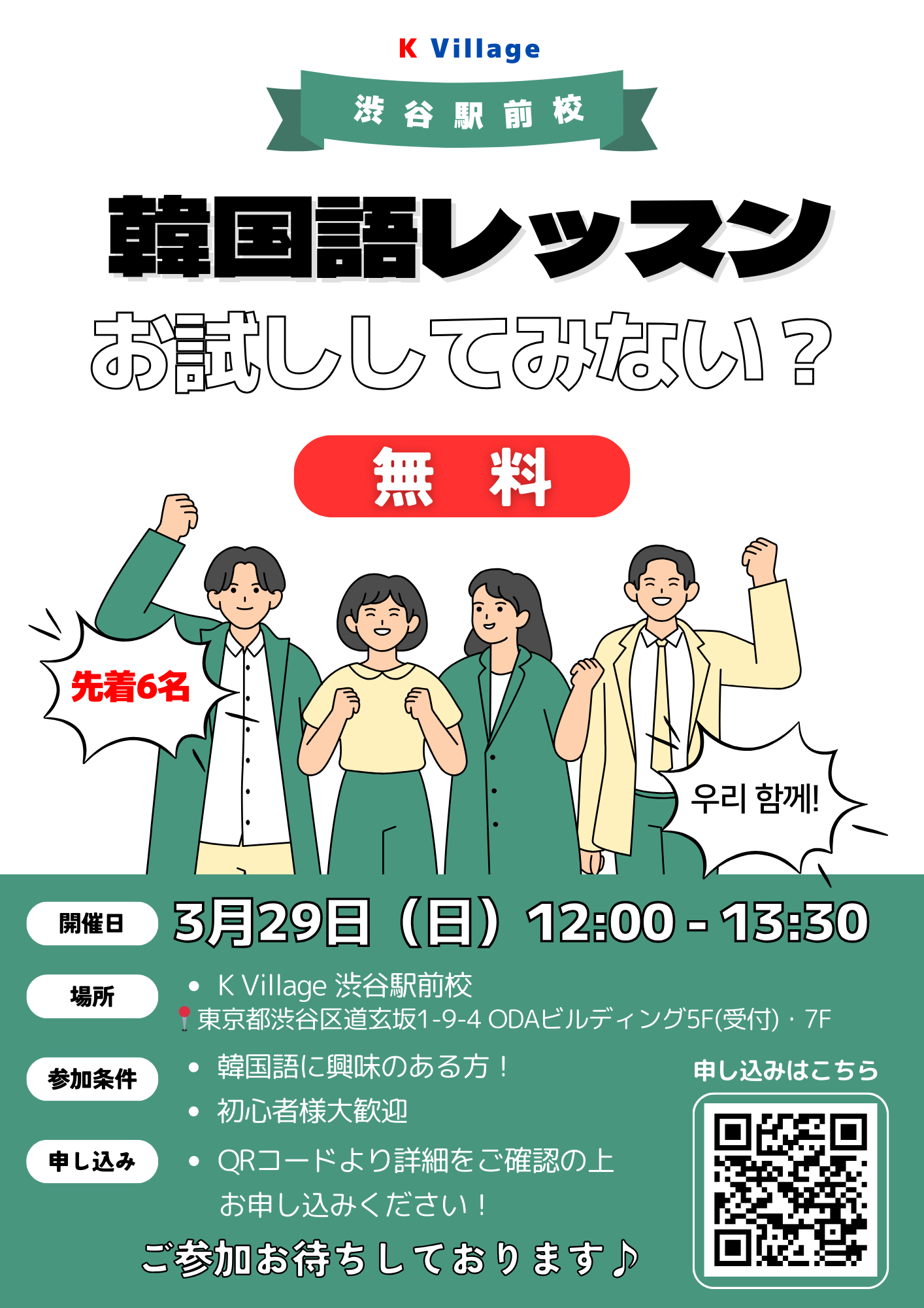 この度K Village 渋谷駅前校では無料の韓国語レッスン】を開催します!⭐